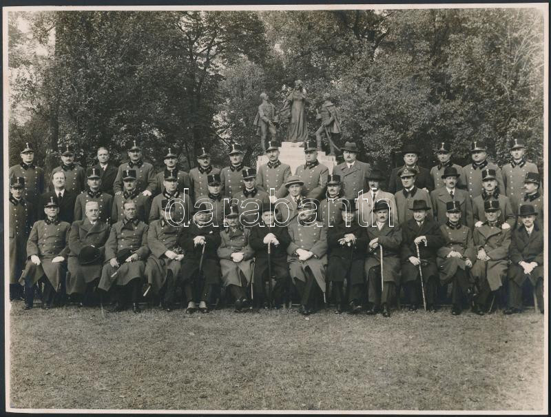 Description: Vitéz Major Jenő vezérezredes a II. hadsereg parancsnoka által Bántay Alfréd későbbi tábornoknak küldött fotó a Ludovika tanári karáról, rajta Vitéz Major Jenő, Kisbarnaki, Berger Beregfy Károly, stb, fotó borítékban, 17x23 cm