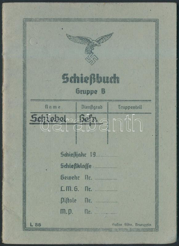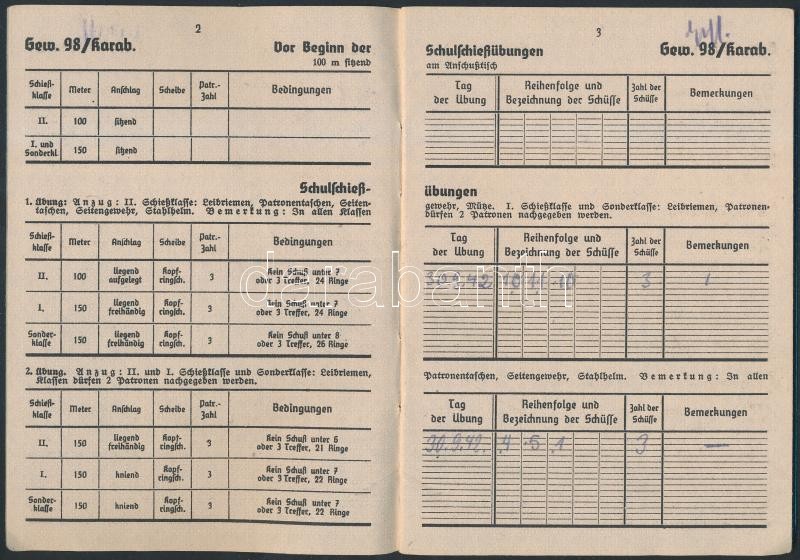 cca 1942 Schießbuch für Gewehr, LMG, Pistole, MP, német nyelvű lőkönyv, jó állapotban / 1941 Schießbuch für Gewehr, LMG, Pistole, MP, shooting book in German, in good condition