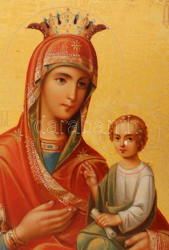 1902 Koronás Madonna a kis Jézussal, orosz ikon, tojás tempera, fa táb... https://www.darabanth.com/en/265-Online-auction/265.0/Other-collectibles/Paintings-and-graphics~1/1902-Koronas-Madonna-a-kis-Jezussal-orosz-ikon-tojas-tempera-fa-tabla-hatodalon-cirill-lei~II1287282