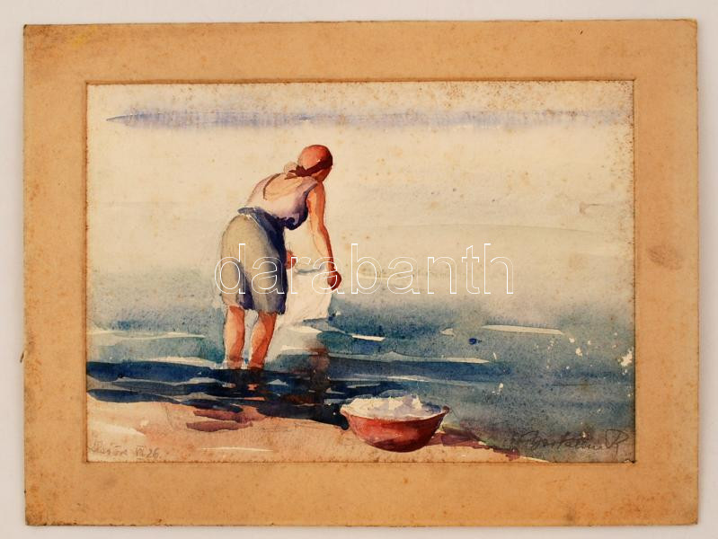 Bertalan Rózsa (1900-1987): Mosó nő. Akvarell, papír, foltos, 20×28 cm