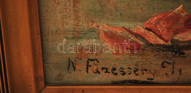 Füzesséry jelzéssel: Rózsás csendélet. Olaj, karton (sérült), jelzett,...