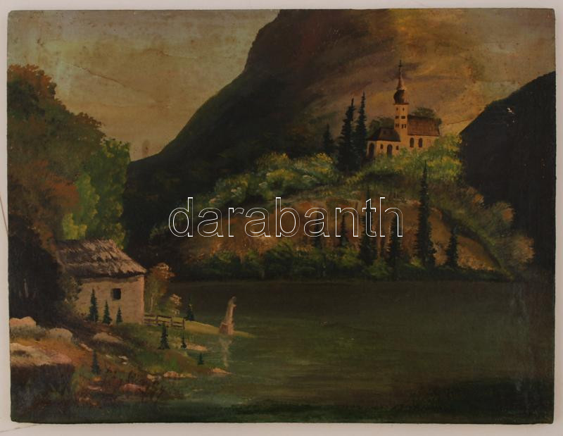 Háry jelzéssel: Templom a tónál. Olaj, vászon, 32×42 cm