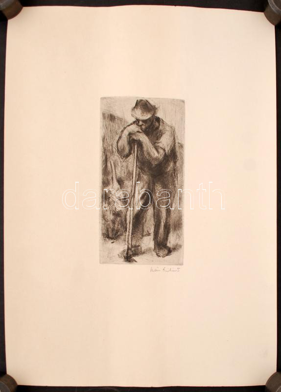 Iván Szilárd (1912-1988): Támaszkodó. Rézkarc, papír, jelzett, felteke...