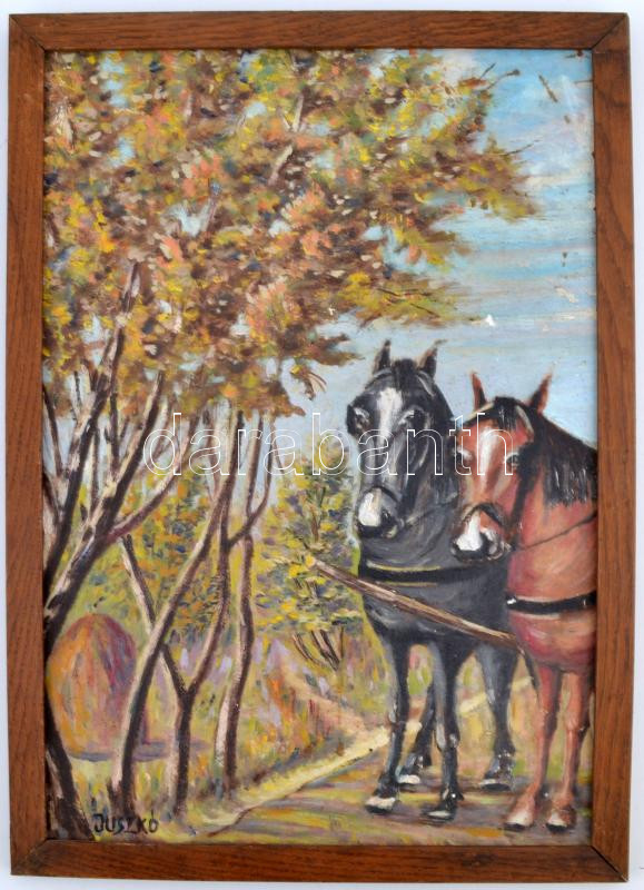 https://www.darabanth.com/en/265-Online-auction/265.0/Other-collectibles/Paintings-and-graphics~1/Juszko-jelzessel-Lovak-Olaj-farost-keretben-43C39730-cm~II1260105