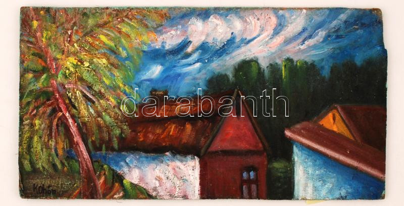 Kohán jelzéssel: Háztető. Olaj, vászon farostra kasírozva, sérült, 28×...