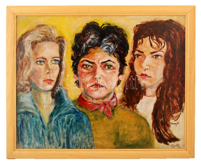 Náray jelzéssel: Hármas portré. Olaj, karton, keretben, 55×66 cm