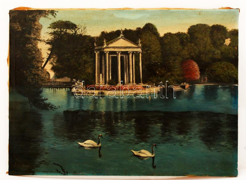 Olvashatatlan jelzéssel: Mauzóleum a tó partján. Olaj, vászon, 59×79 c...