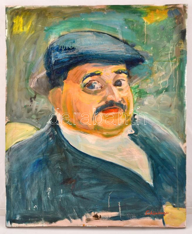 Schönberger jelzéssel: Férfi portré. Olaj, vászon, sérült, 55×45 cm