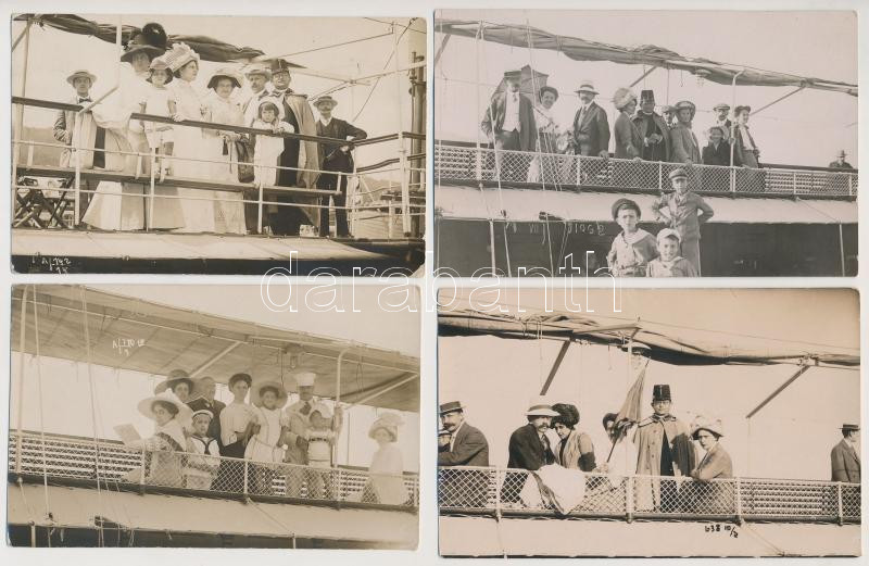 1911 Káplán tábori lelkész és hozzátartozói sétahajózáson, Abbazia, 5db fotólap, 9x13cm