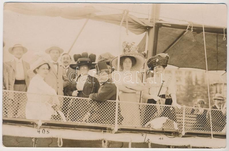 1911 Káplán tábori lelkész és hozzátartozói sétahajózáson, Abbazia, 5d...