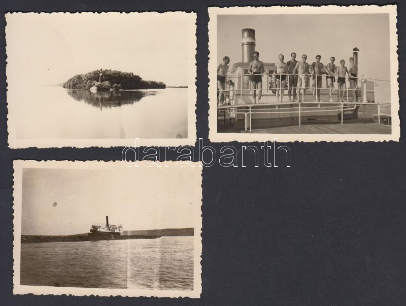 1941 A Duna-Tisza torkolata, az egyik képen egy zátonyra futott szerb hajóval, 3 db fotó, 6x9 cm