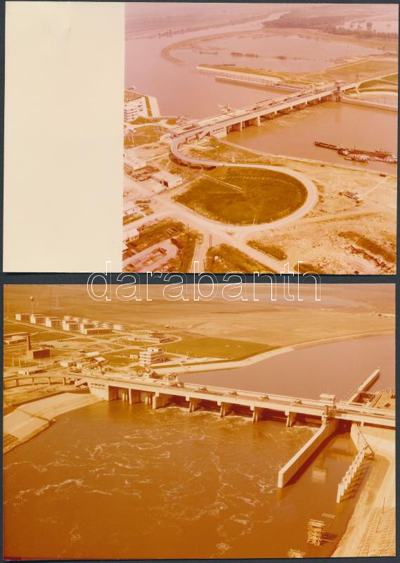 1974-1975 Kiskörei vízlépcső és víztározó, 2 db vinatge feliratozott f...