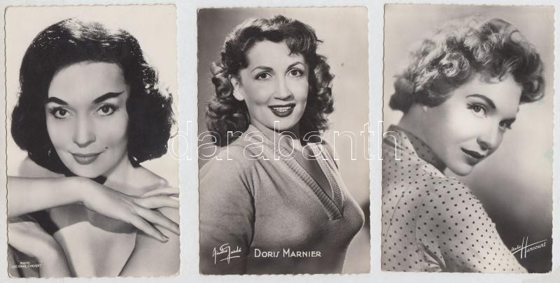 3 db színésznőket ábrázoló fotólap: Doris Marnier, Ludmilla Tcherina, ...