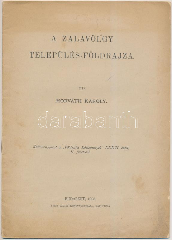 1908 Horváth Károly: a Zalavölgy település-földrajza. Különlenyomat a ... https://www.darabanth.com/en/265-Online-auction/265.0/Other-collectibles/Printed-Materials~200295/1908-Horvath-Karoly-a-Zalavolgy-telepules-foldrajza-Kulonlenyomat-a-Foldrajzi-Kozlemen~II1278750