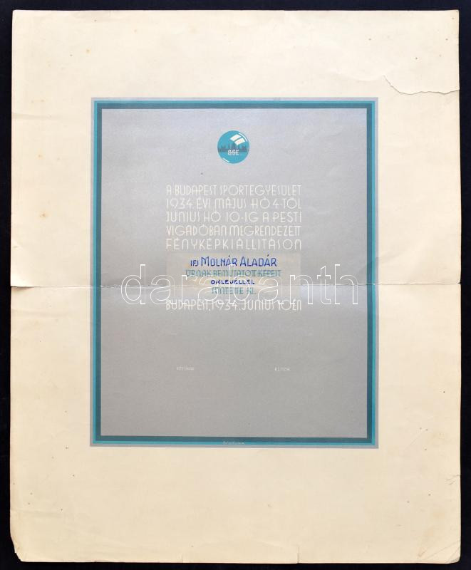 1934 BSE fényképkiállításának elismerő oklevele. Egy a képet nem érint...