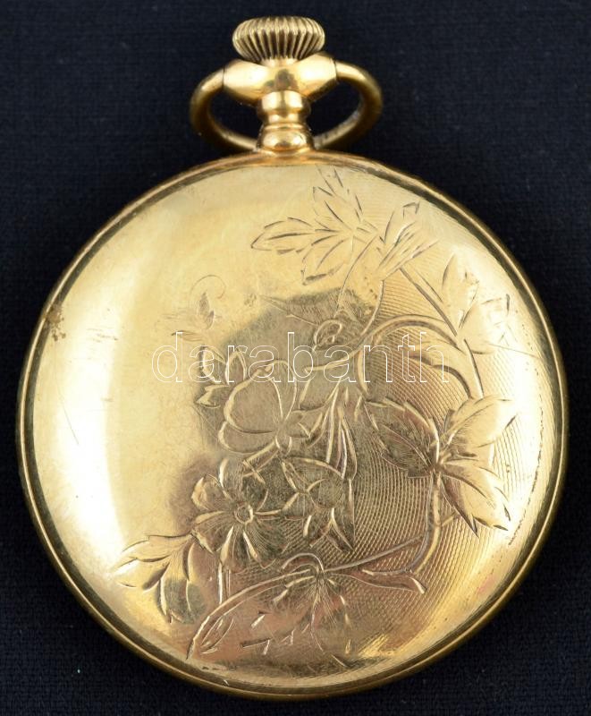 Aranyozott, régi mechanikus zsebóra E jelzéssel, hátlap nehezen nyílik...