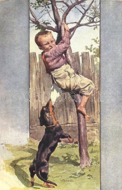 Dachshund with boy, humour, B.K.W.I. 974-6. (fa)