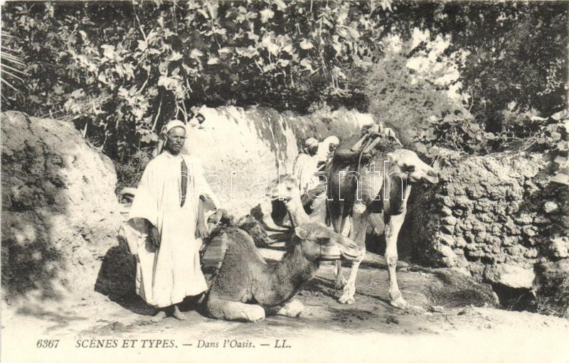 Dans l'Oasis / man with camels, Arabic folklore