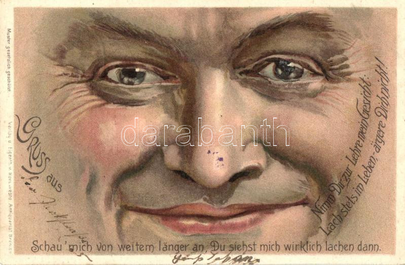 1898 Schau mich von weitem langer an Du siehst mich wirklich lachen dann / Face, humour, Nordwestd. Antiquariat litho