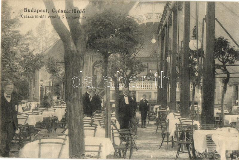 Budapest II. Császárfürdő, a Császárfürdői vendéglő és kávéház kerthel...