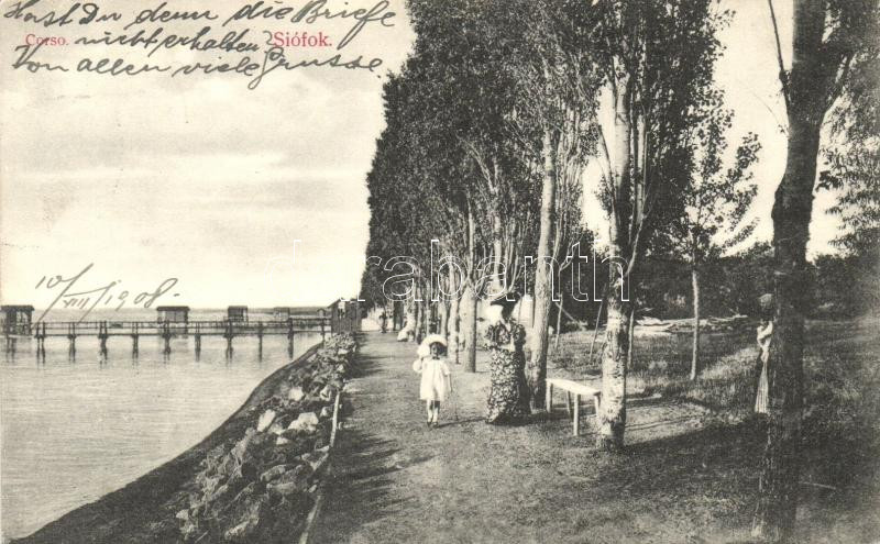 Siófok, parti sétány, 'Corso', kiadja Divald Károly