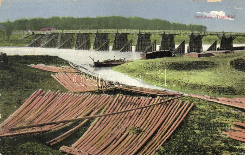 Szolnok, Tisza híd, farönkök, kiadja Glass &Tuscher képeslapgyára ...