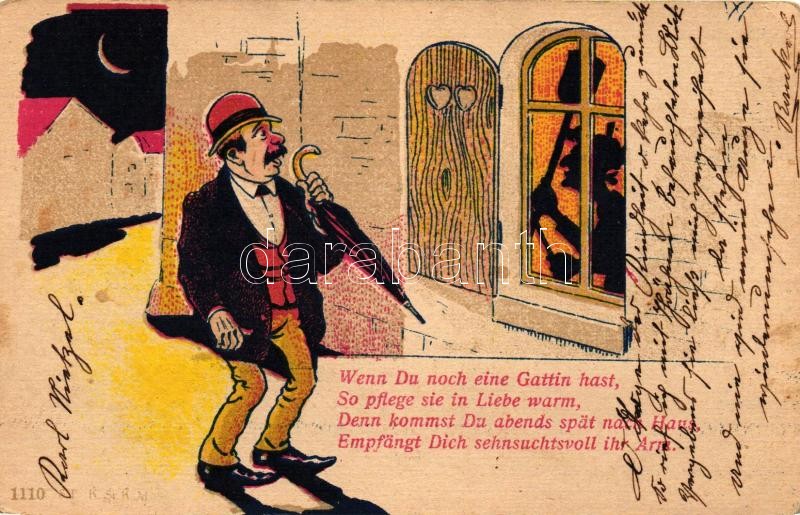 8 db RÉGI motívum képeslap, egy kivételével humoros lapok, vegyes minőség / 8 old motive postcards, all but one humour cards, mixed quality