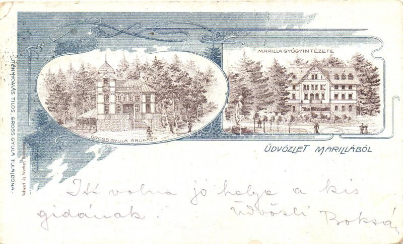 Marilla, Gyógyintézet, Gross Gyula áruháza; Gross Gyula tulajdona / sp...