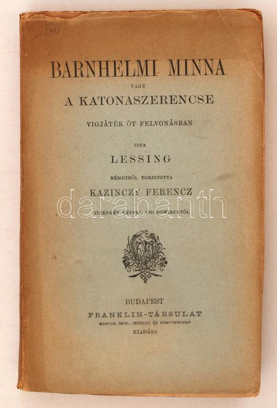 Gotthold Ephraim Lessing: Barnhelmi Minna vagy A katonaszerencse. Vígj... https://www.darabanth.com/en/266-Online-auction/266.0/Books/Books-Other-rarities~500026/Gotthold-Ephraim-Lessing-Barnhelmi-Minna-vagy-A-katonaszerencse-Vigjatek-Ford-Kazinczy-Ferenc~II1335049