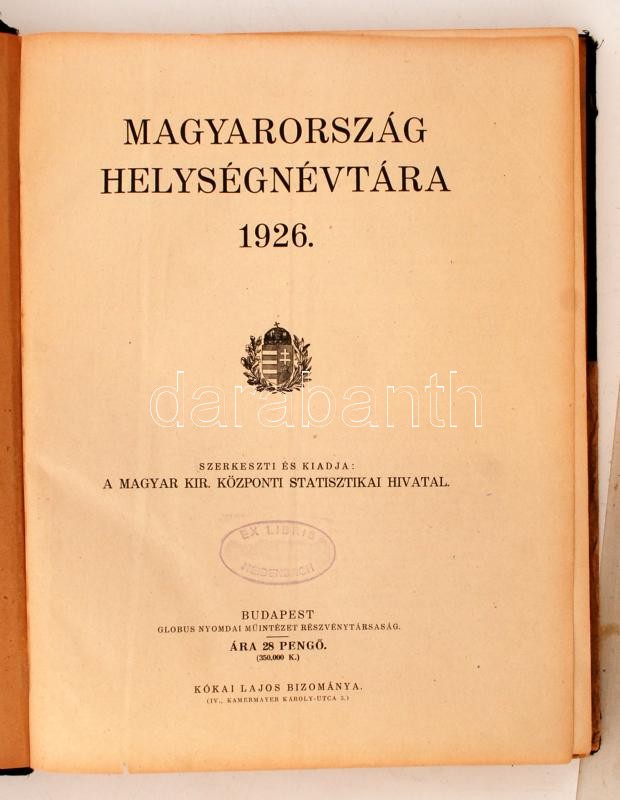 https://www.darabanth.com/en/266-Online-auction/266.0/Books/Books-Other-rarities~500026/Magyarorszag-helysegnevtara-Bp-1926-Magyar-Kiralyi-Kozponti-Statisztikai-Hivatal-Megvisel~II1334801