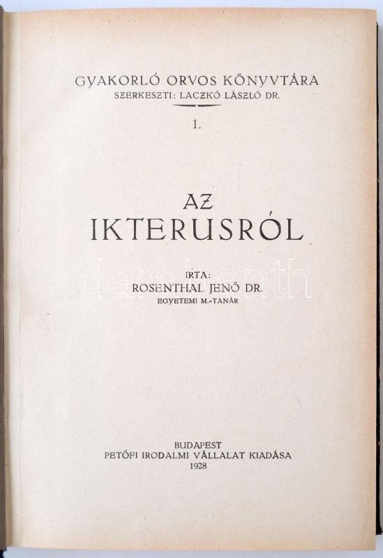 Description: A "Gyakorló Orvos Könyvtára" c. orvostudományi füzetek első 17 száma egybekötve. Szerkeszti dr. Laczkó László. Bp., 1928-30, Petőfi. Korabeli félvászonkötésben.