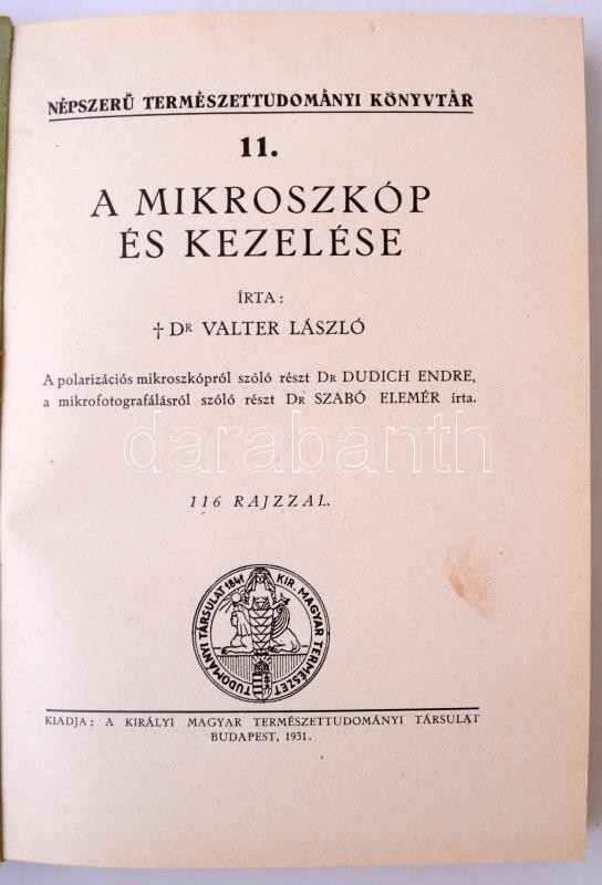 Dr. Valter László: A mikroszkóp kezelése. Bp., 1931, Királyi Magyar Te...