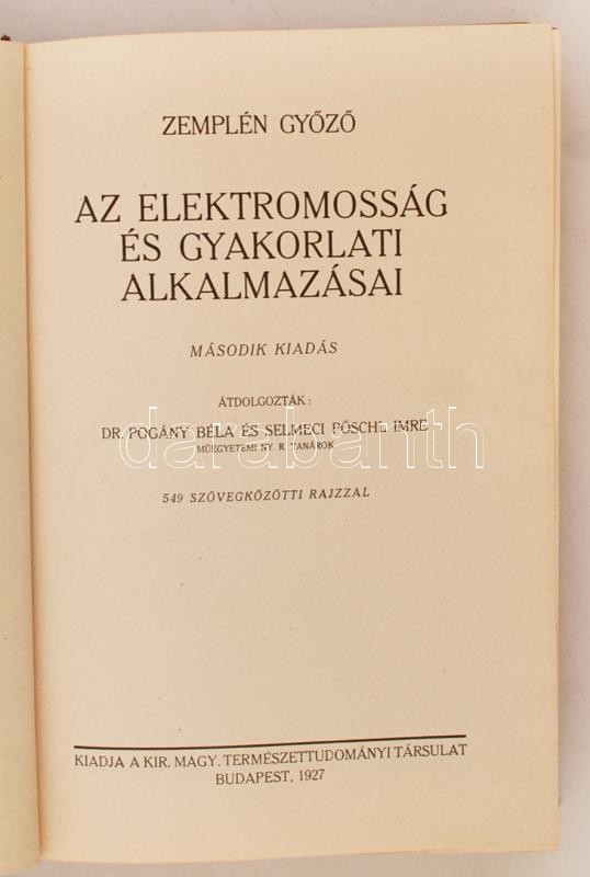 Zemplén Győző: Az elektromosság és gyakorlati alkalmazásai. Második, á... https://www.darabanth.com/en/266-Online-auction/266.0/Books/Books-Science-and-technology~36/Zemplen-Gyozo-Az-elektromossag-es-gyakorlati-alkalmazasai-Masodik-atdolgozott-kiadas-Bp~II1334381