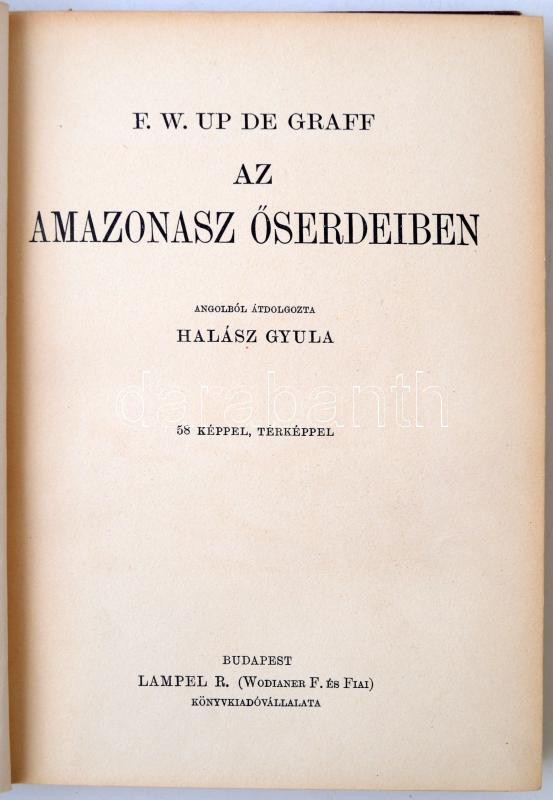 F. W. Up de Graff: Az Amazonasz őserdeiben. A Magyar Földrajzi Társaság Könyvtára. Bp., é. n., Lampel R. Kiadói, kissé foltos egészvászon sorozatkötésben