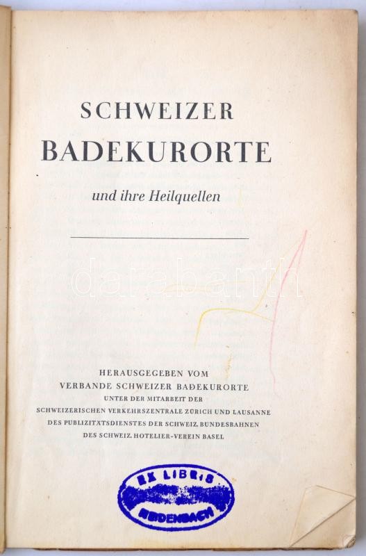 Schweizer Badekurorte und ihre Heilquellen. Zürich, é. n., Orell Füssli. Kissé szakadt papírkötésben.