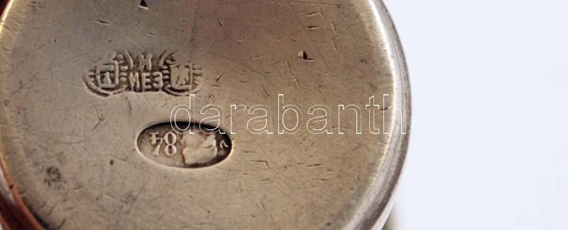 Antik orosz ezüst (Ag.) vodkás pohár, jelzett, mesterjeggyel (IEZ [= Izrail' Eszejevich Zahoder]), d: 4 cm, m: 5 cm, nettó 21 g / Antique Russian silver (Ag.) vodka cup, with hallmark and maker's mark (IEZ [= Izrail' Eseevich Zakhoder]), d: 4 cm, h: 5 cm, net weight: 21 g