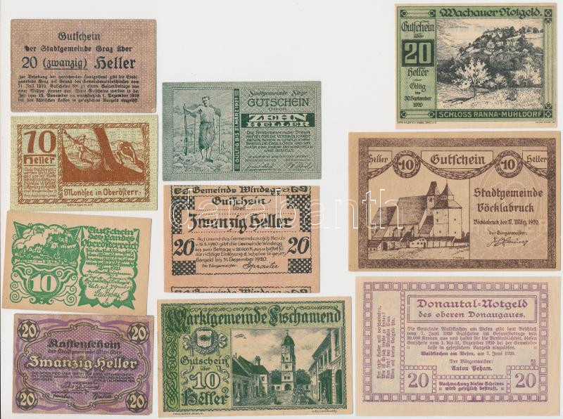 Ausztria 1919-1921. 10db-os Heller szükségpénz tétel T:I,I-,II