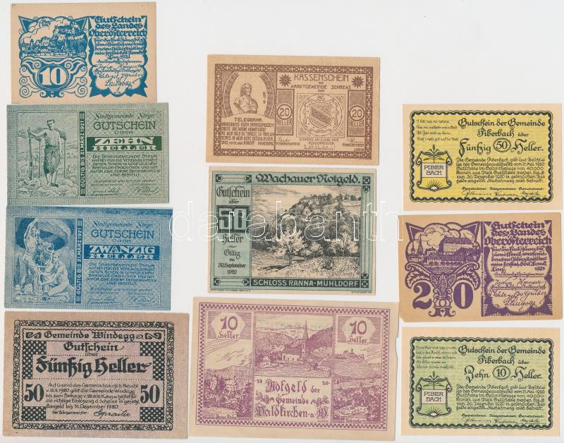 Ausztria 1920-1921. 10db-os Heller szükségpénz tétel T:I,I-,II