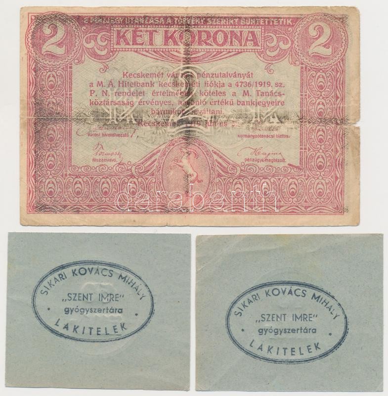 https://www.darabanth.com/en/266-Online-auction/266.0/Numismatics/Emergency-Coins-and-Notes~500006/Kecskemet-19190605-2K-plus-Lakitelek-DN-10f-plus-50f-Sikari-Kovacs-Mihaly-Szent-Imre-gyogyszertar~II1335137