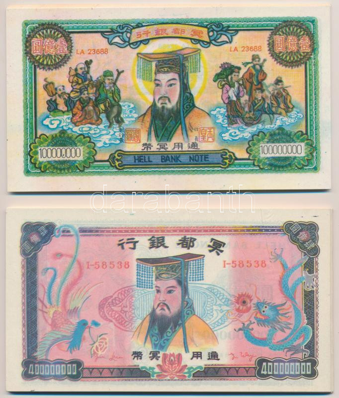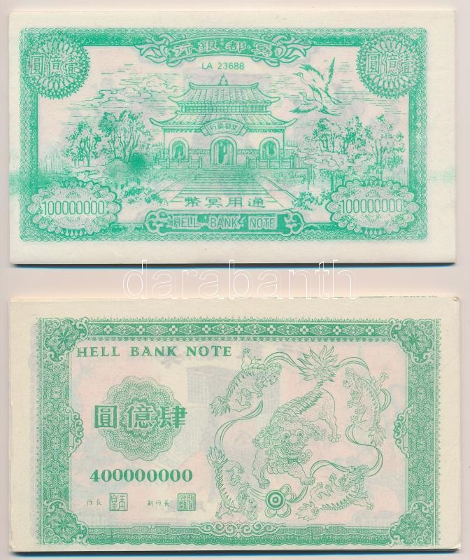 Kína DN Égetési pénz 34db 100.000.000 névértékben + 55db 400.000.000 névértékben T:I China ND Hell banknotes 34x100.000.000 + 55x 400.000.000 C:UNC