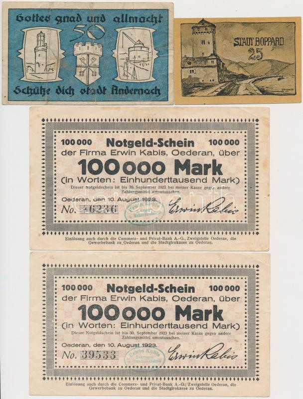 Germany / Weimar Republic 1920-1923. 5pcs of necessity notes, including Aachen, Boppard, Oederan - Erwin Kabis Zwirnerei und Nahfadenfabrik C:F