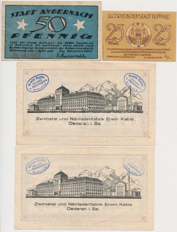 Németország / Weimari Köztársaság 1920-1923. 5db-os szükségpénz tétel, közte Aachen, Boppard, Oederan - Erwin Kabis Cérnagyár T:III