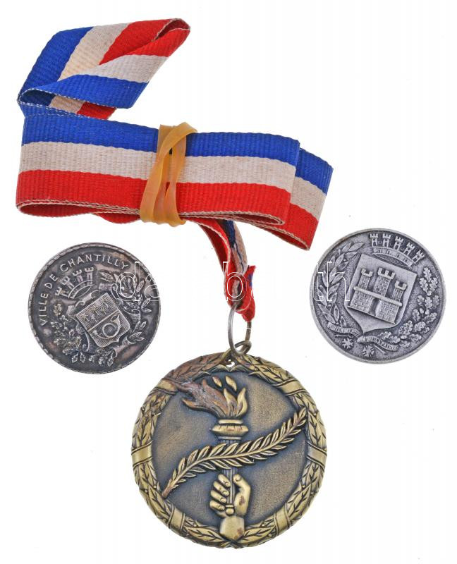 Description: Franciaország DN 3db klf fém jelvény és érem, közte "Ville de Chantilly" fém jelvény (34mm) T:2,2-