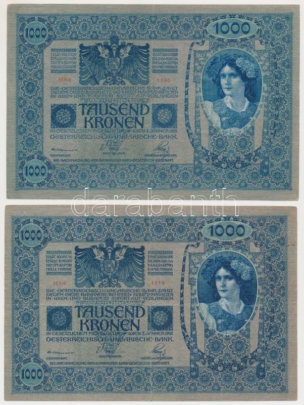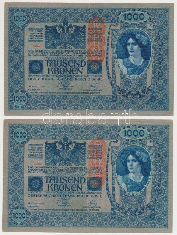 1902. 1000K (2x) mindkét oldal német, "Deutschösterreich" fe...