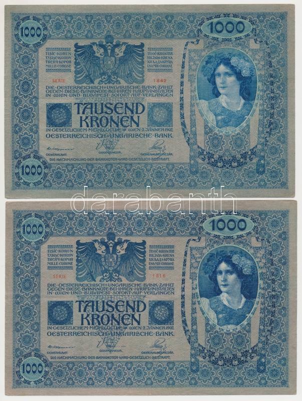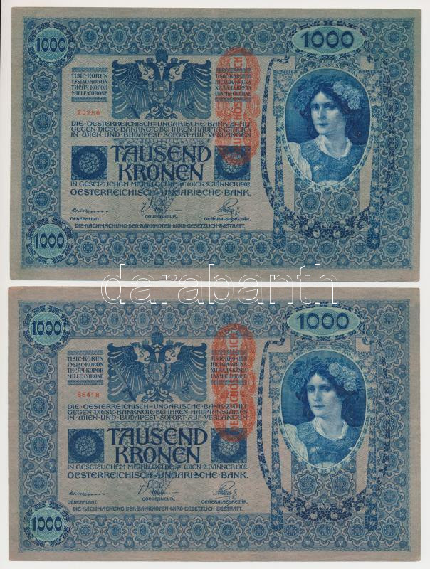 1902. 1000K (2x) mindkét oldal német, "Deutschösterreich" fe...