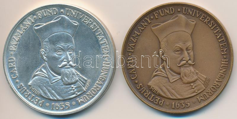 Kelemen Kristóf (1922-) 1985. "MÉE Budapest / Pázmány Péter - Eötvös Lóránd" Ag és Br emlékérem pár (34.53g/0.640/42.5mm) T:1-