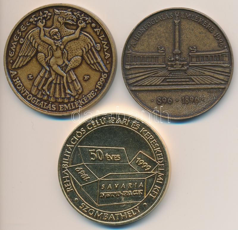 Lebó Ferenc (1960-) 1996. "A Honfoglalás emlékére - Emese álma / Álmos áldozata" Br emlékérem (42,5mm) + 1996. "A honfoglalás emlékére / Árpád Nagyfejedelem" Br emlékérem (42,5mm) + 1999. "Együtt egymásért / Rehabilitációs célú ipari és kereskedelmi Kft. Szombathely" aranyozott fém emlékérem (42,5mm) T:2