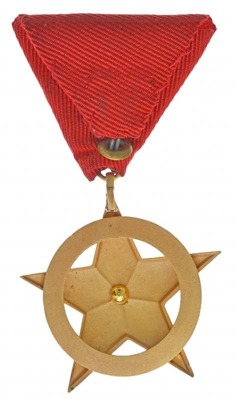 Description: 1957. "Vörös Csillag Érdemrend" aranyozott, zománcozott bronz kitüntetés mellszalagon, tokban T:2 zománchiba