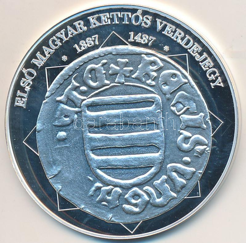 https://www.darabanth.com/en/266-Online-auction/266.0/Numismatics/Modern-restrikes-fantasy-coins~500021/DN-A-magyar-nemzet-penzermei--Elso-magyar-kettos-verdejegy-1387-1437-Ag-emlekerem-tanusi~II1331694