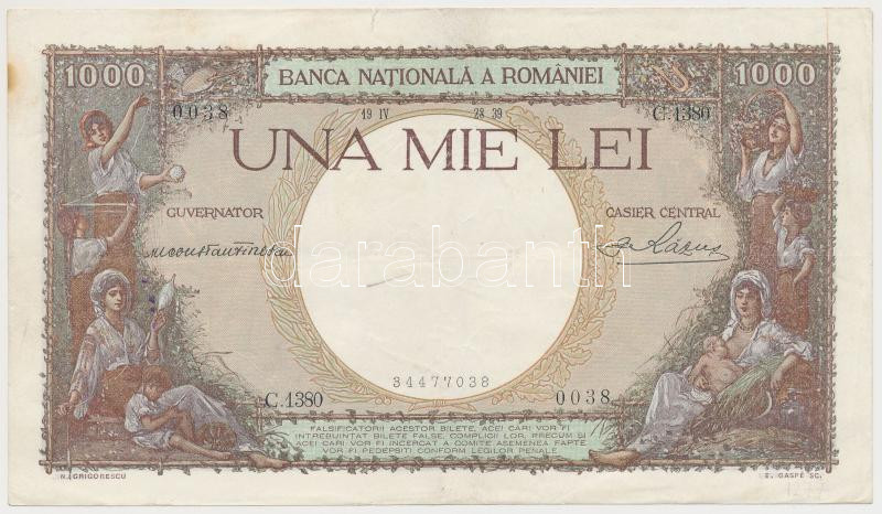 https://www.darabanth.com/en/266-Online-auction/266.0/Numismatics/Worldwide-banknotes~500011/Romania-1939-1000L-TIII-kis-szakadas--Romania-1939-1000-Lei-CF-small-tear~II1330664
